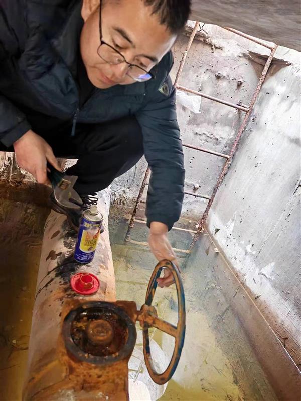 熱力公司工作人員維修市公安局換熱站一次網(wǎng)抽頭井閥門
